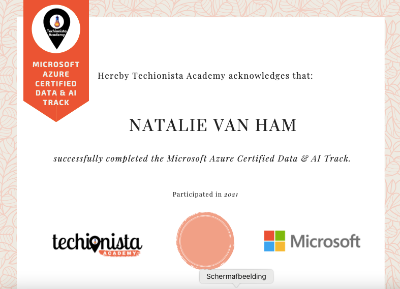 Altijd al was er liefde voor data en daarom heb ik in 2021 een opleiding gevolgd bij de Techionista Academy met ondersteuning van TechMeUp en haalde er Microsoft certificaten. De passie werd eigenlijk alleen maar groter en in 2023 heb ik de stap gezet om mijn eigen bedrijf te starten.